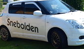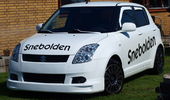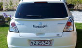 Fed ide med vindafvisere i bilens farve! Fælgene passer overraskende godt til en hvid bil.